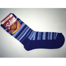 Oblíbená vícebarevná bavlněná ponožka s elastanem. Klasická výška lýtka, vzorování s nepravidelnou šířkou proužku, s jednobarevným zatepleným chodidlem. Vyráběna ve dvojčíslí 23-24, 25-26.